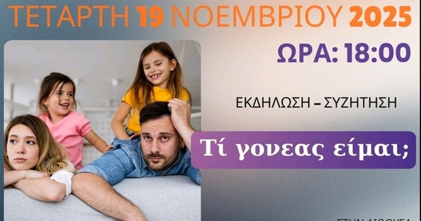Η ψυχολόγος Θεοφανή Σφακιανάκη καθοδηγεί μια ανοιχτή συζήτηση για τον γονεϊκό ρόλο, τις ανάγκες παιδιών και γονιών και την ενίσχυση της οικογενειακής επικοινωνίας, την Τετάρτη 19 Νοεμβρίου 2025
