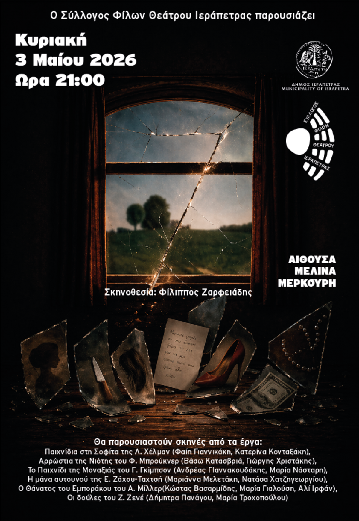 Ο Σύλλογος Φίλων Θεάτρου Ιεράπετρας, με ιδιαίτερη χαρά, παρουσιάζει την παράσταση «7», μια σύνθεση θεατρικών αποσπασμάτων που αναδεικνύουν διαχρονικά και βαθιά ανθρώπινα ζητήματα.
