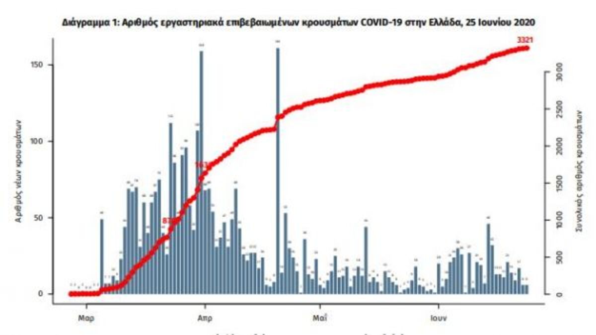 Στο μεταξύ κατά την τελευταία ενημέρωση για την πορεία εξάπλωσης του κοροναϊού στη χώρα μας χθες, ανακοινώθηκαν 13 νέα κρούσματα του ιού στη χώρα. Ο συνολικός αριθμός των κρουσμάτων είναι 3321, εκ των οποίων το 55.0% άνδρες αφορά άνδρες.
