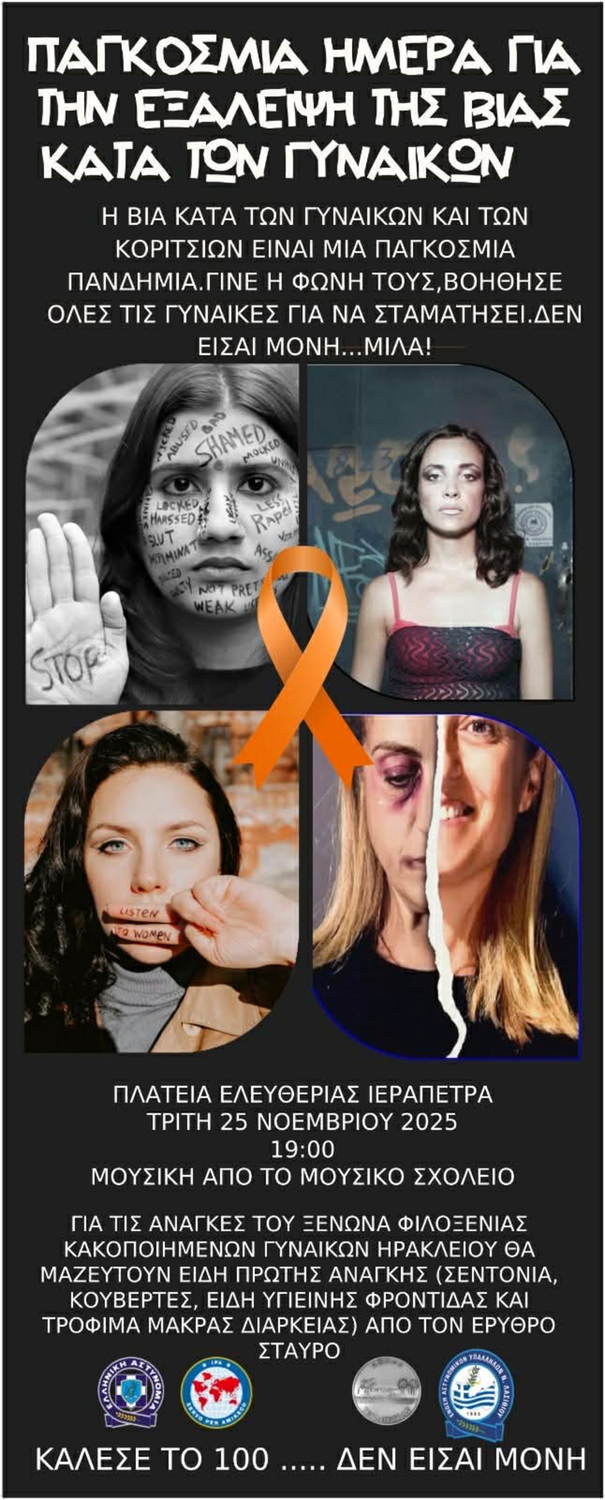 Η Επιτροπή Ισότητας και ο Δήμος Ιεράπετρας διοργανώνουν εκδήλωση στις 25 Νοεμβρίου με συλλογή ειδών για τη στήριξη του Ξενώνα Κακοποιημένων Γυναικών Ηρακλείου.