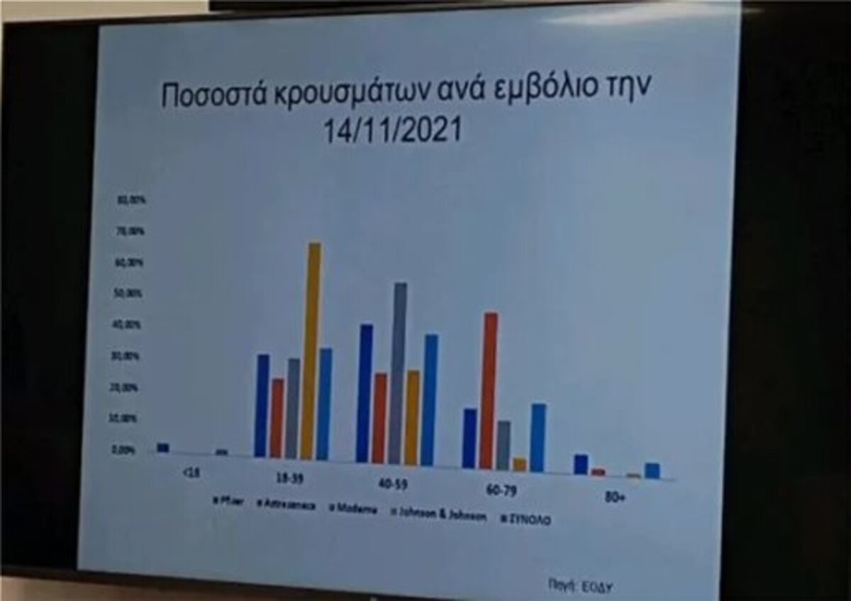 Το 40% είχε κάνει το εμβόλιο της Pfizer. Λίγο πάνω από το 20% ήταν οι εμβολισμένοι που νόσησαν και είχαν κάνει το εμβόλιο της AstraZeneca. Το 50% ήταν εμβολισμένοι με Moderna και ανάμεσα στο 20% με 30% με το μονοδοσικό της Johnson & Johnson. Συνολικά οι εμβολιασμένοι σε αυτή την ηλικιακή κατηγορία είναι κοντά στο 40%.