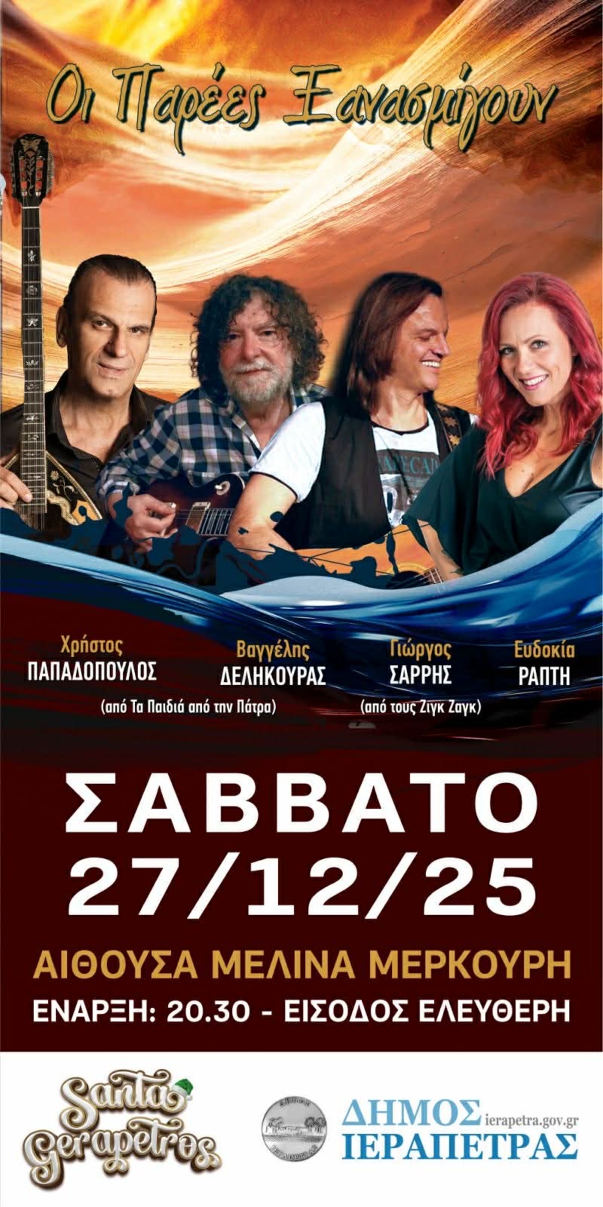 Σάββατο 27 Δεκεμβρίου στην Αίθουσα «Μελίνα Μερκούρη» – Ελληνικό τραγούδι, κέφι και ελεύθερη είσοδος για όλου