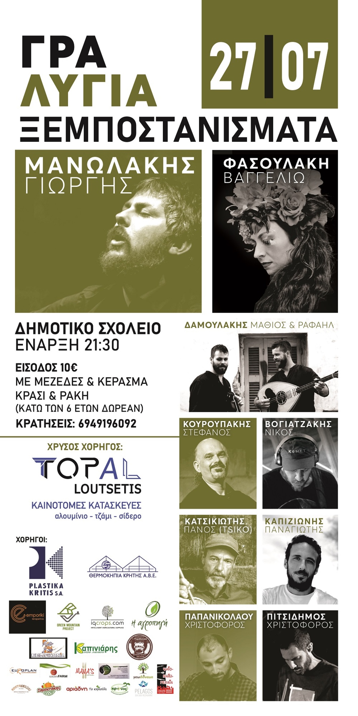 Είσοδος 10 ευρώ με κέρασμα μεζέδες, ρακί και κρασί.