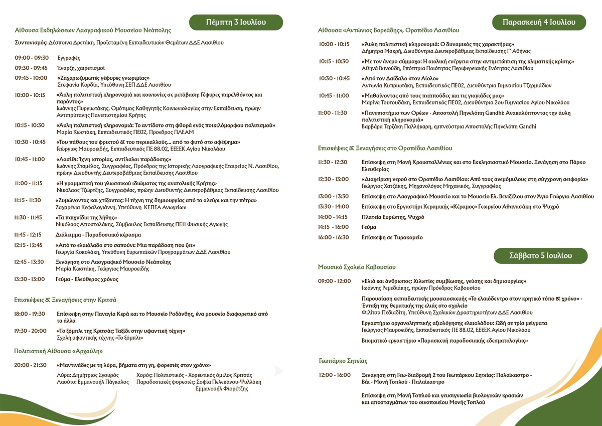 Θερινό Σχολείο: Λασίθι εν τέχνη και χρόνω | 3 έως 6 Ιουλίου 2025 ΛΑΣΙΘΙ ΙΕΡΑΠΕΤΡΑ 12:38 μ.μ. - Τετάρτη 25 Ιουνίου 2025 12:06 μ.μ. - Τετ, 25/38/2025 ΛΑΣΙΘΙ, ΘΕΡΙΝΟ ΣΧΟΛΕΙΟ, ΔΔΕ ΛΑΣΙΘΙΟΥ Ένα τετραήμερο ταξίδι στην άυλη πολιτιστική κληρονομιά του Λασιθίου