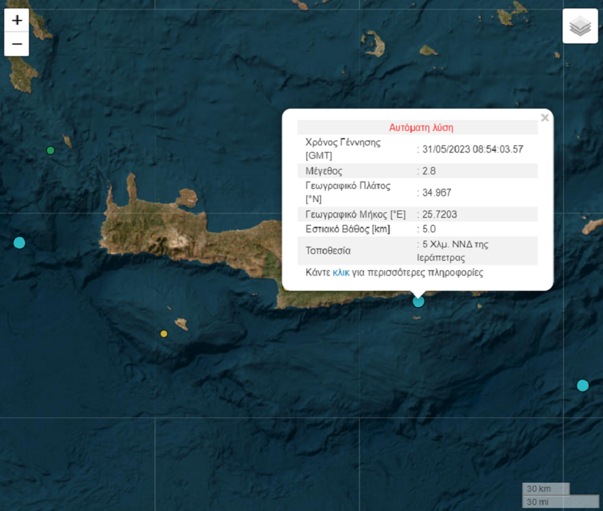 Αισθητή σεισμική δόνηση 2,8 Ρίχτερ στην Ιεράπετρα ΛΑΣΙΘΙ ΙΕΡΑΠΕΤΡΑ 12:03 μ.μ. - Τετάρτη 31 Μαΐου 2023 12:05 μ.μ. - Τετ, 31/03/2023 ΙΕΡΑΠΕΤΡΑ, ΣΕΙΣΜΟΣ, ΓΕΩΔΥΝΑΜΙΚΟ ΙΝΣΤΙΤΟΥΤΟ ΑΘΗΝΩΝ Σύμφωνα με το Γεωδυναμικό Ινστιτούτο