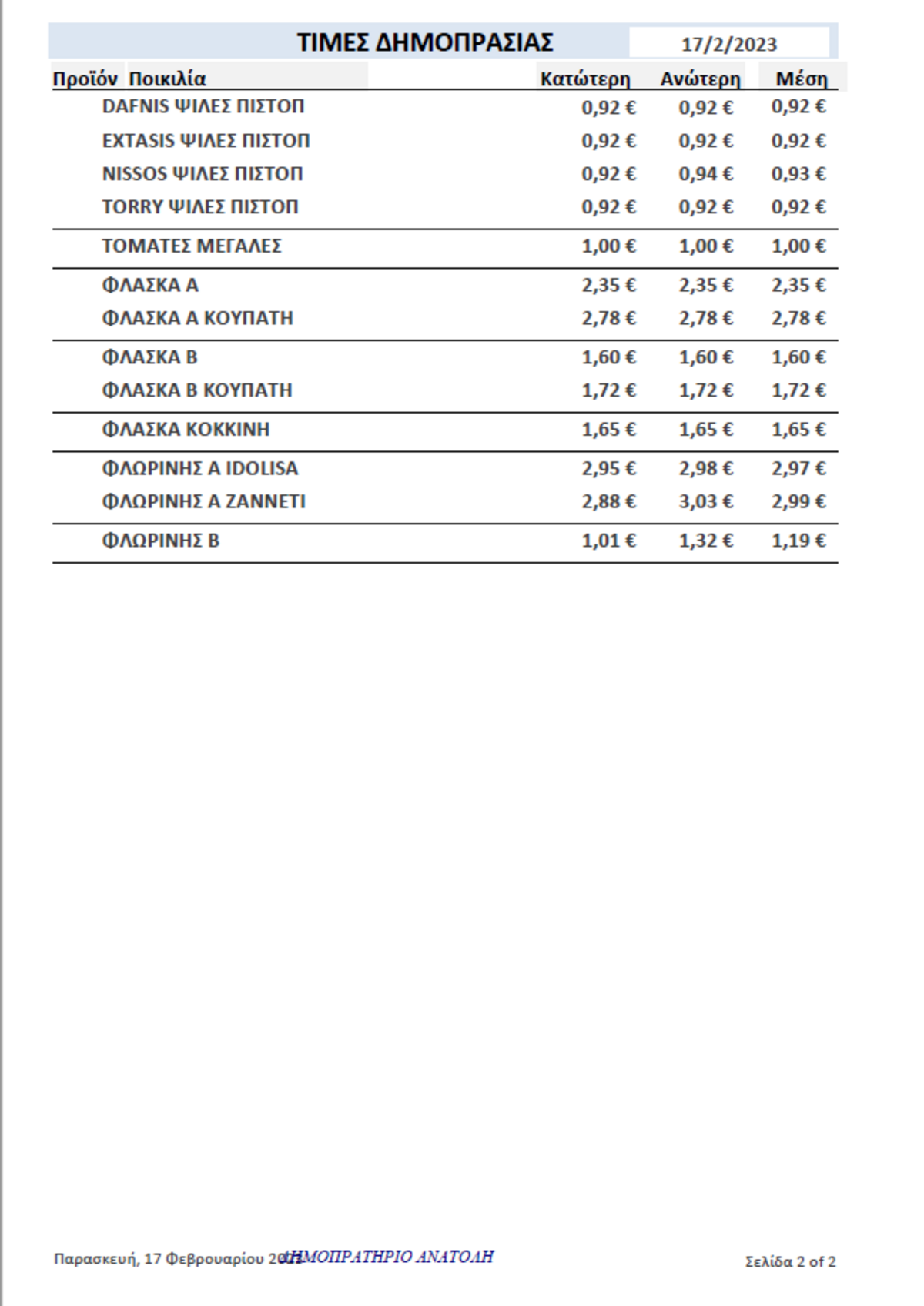Α.Σ. ΑΝΑΤΟΛΗ | Τιμές Αγροτικών Προϊόντων 17-02-2023 AGROΝΕΑ ΤΙΜΕΣ 12:59 μ.μ. - Παρασκευή 17 Φεβρουαρίου 2023 12:02 μ.μ. - Παρ, 17/59/2023 ΙΕΡΑΠΕΤΡΑ, ΤΙΜΕΣ ΑΓΡΟΤΙΚΩΝ ΠΡΟΙΟΝΤΩΝ, ΔΗΜΟΠΡΑΣΙΑ, Α.Σ. ΑΝΑΤΟΛΗ Δείτε τις σημερινές τιμές του δημοπρατηρίου