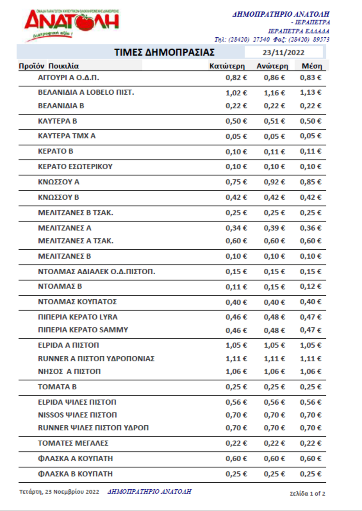 Α.Σ. ΑΝΑΤΟΛΗ | Τιμές Αγροτικών Προϊόντων 23-11-2022 AGROΝΕΑ ΤΙΜΕΣ 12:19 μ.μ. - Τετάρτη 23 Νοεμβρίου 2022 12:11 μ.μ. - Τετ, 23/19/2022 ΙΕΡΑΠΕΤΡΑ, ΤΙΜΕΣ ΑΓΡΟΤΙΚΩΝ ΠΡΟΙΟΝΤΩΝ, ΔΗΜΟΠΡΑΣΙΑ, Α.Σ. ΑΝΑΤΟΛΗ Δείτε τις σημερινές τιμές του δημοπρατηρίου