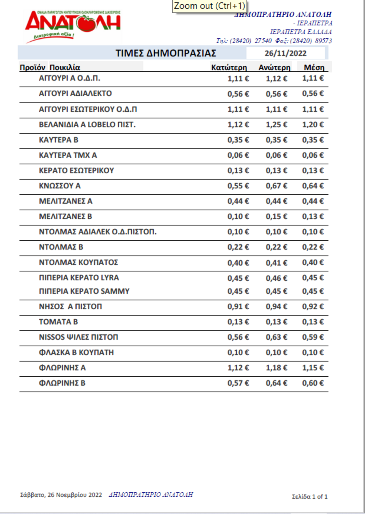 Α.Σ. ΑΝΑΤΟΛΗ | Τιμές Αγροτικών Προϊόντων 26-11-2022 AGROΝΕΑ ΤΙΜΕΣ 4:17 μ.μ. - Σάββατο 26 Νοεμβρίου 2022 04:11 μ.μ. - Σάβ, 26/17/2022 ΙΕΡΑΠΕΤΡΑ, ΤΙΜΕΣ ΑΓΡΟΤΙΚΩΝ ΠΡΟΙΟΝΤΩΝ, ΔΗΜΟΠΡΑΣΙΑ, Α.Σ. ΑΝΑΤΟΛΗ Δείτε τις σημερινές τιμές του δημοπρατηρίου