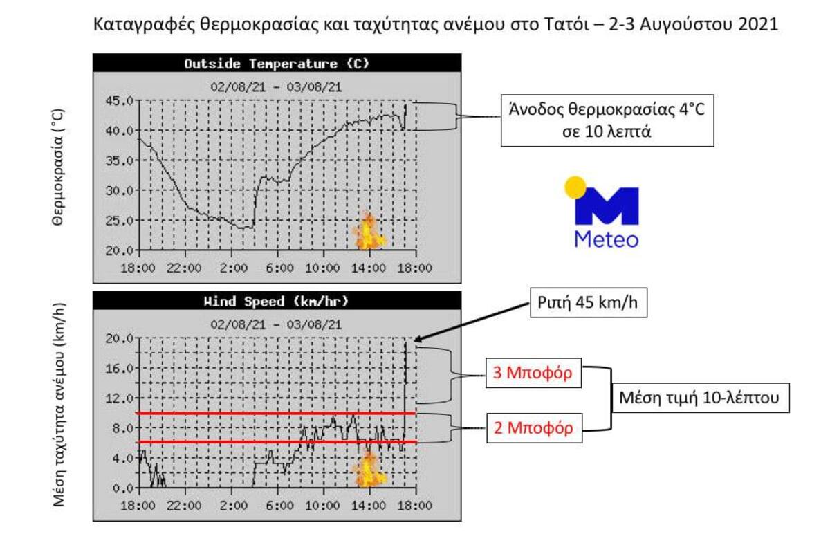 «Σχετικά με τις καιρικές συνθήκες στο Τατόι κατά την έναρξη και αρχική εξάπλωση της μεγάλης δασικής πυρκαγιάς - 3 Αυγούστου 2021