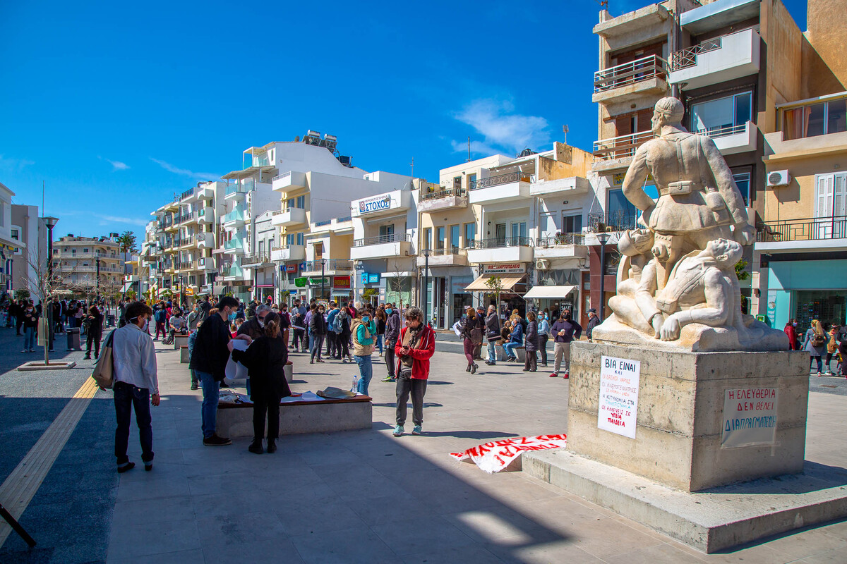 Συγκέντρωση πραγματοποιήθηκε στην κεντρική πλατεία της Ιεράπετρας σήμερα Σάββατο 13 Μαρτίου στις 11.30 το πρωί τηρουμένων των μέτρων, με αφορμή τα όσα συμβαίνουν το τελευταίο διάστημα στην Αθήνα και όχι μόνο.