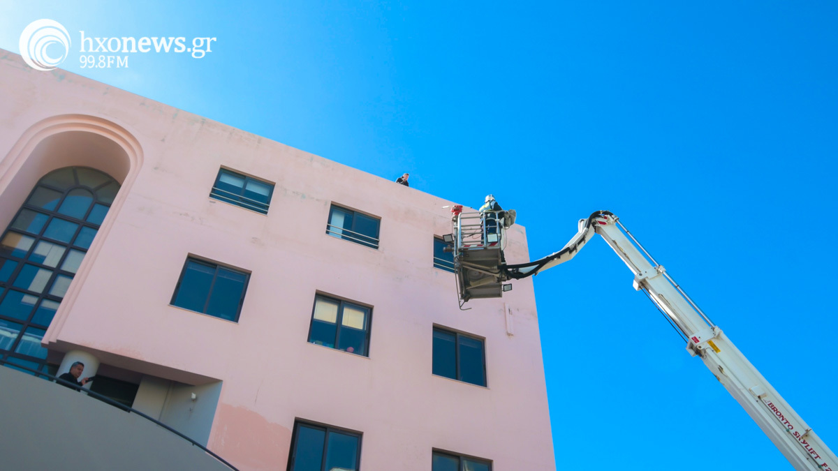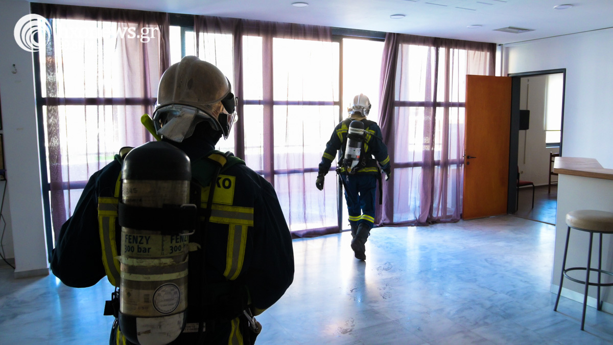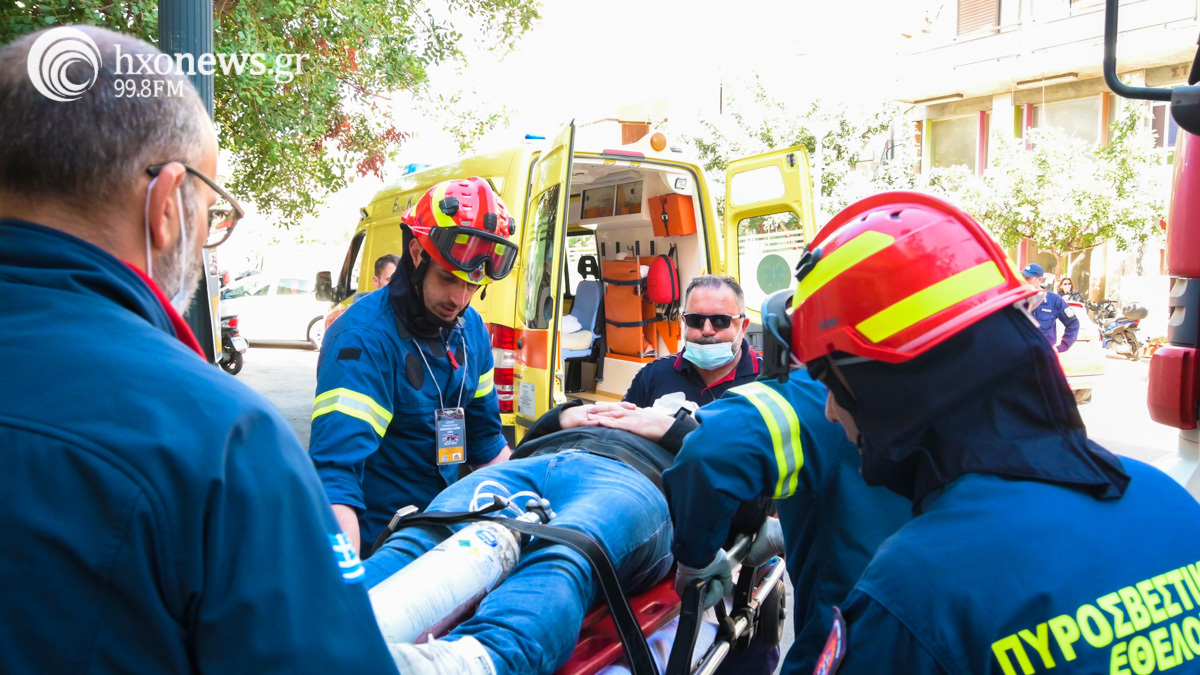 Στο πλαίσιο της άσκησης έγινε έρευνα, διάσωση και απεγκλωβισμός ατόμων από τους ορόφους και την ταράτσα του κτιρίου.