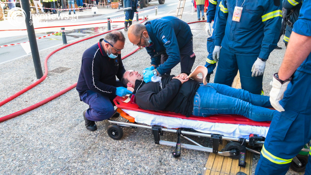 Εκτός από την Πυροσβεστική στην άσκηση συμμετείχαν Αστυνομία, δημοτική αστυνομία, ΕΚΑΒ, διασώστες, εθελοντές κα.