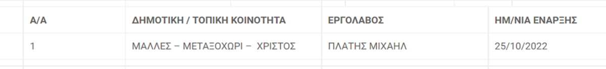 Η Δ/νση Αγροτικής Οικονομίας και Κτηνιατρικής Περιφερειακής Ενότητας Λασιθίου γνωστοποιεί, με την προϋπόθεση των κατάλληλων καιρικών συνθηκών, την έναρξη του 6ου δολωματικού γενικού ψεκασμού δακοκτονίας στις παρακάτω περιοχές του Δήμου Ιεράπετρας :