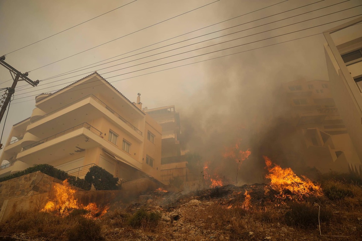 Η πυρκαγιά στην κατοικημένη περιοχή έχει προξενήσει σύμφωνα με την πρώτη εικόνα ζημιές σε αρκετά σπίτια, αλλά λόγω του ότι φαίνεται να εξασθενούν οι άνεμοι παρουσιάζει καλύτερη εικόνα και γίνεται αγώνας για την αντιμετώπιση συνεχών αναζωπυρώσεων, κυρίως από τις επίγειες δυνάμεις, πεζοπόρα τμήματα και εθελοντές.