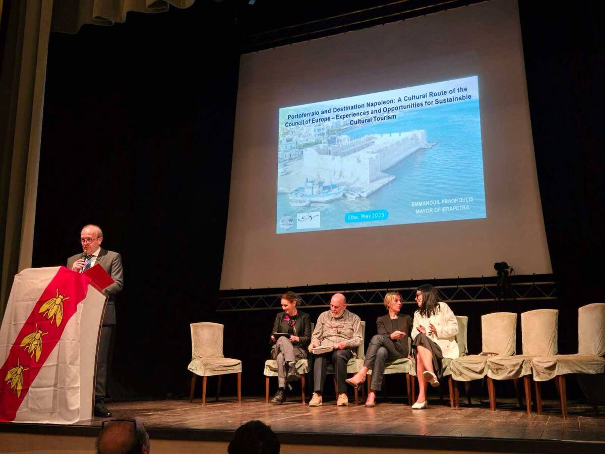 Στο πλαίσιο των εκδηλώσεων, ο Δήμαρχος πραγματοποίησε ομιλία με θέμα «Πορτοφερράιο και Προορισμός Ναπολέων: Μία πολιτιστική διαδρομή του Συμβουλίου της Ευρώπης – Εμπειρίες και Ευκαιρίες για ένα βιώσιμο πολιτιστικό τουρισμό». Στην παρουσίασή του τόνισε τη σημασία της συνεργασίας στο δίκτυο των Πολιτιστικών Διαδρομών του Συμβουλίου της Ευρώπης, παρουσιάζοντας παράλληλα την ιστορική και πολιτιστική ταυτότητα της Ιεράπετρας.