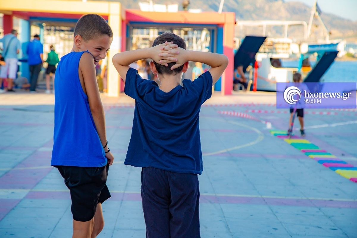 Στην παραλιακή πλατεία έγιναν ομαδικά παιχνίδια από το 1ο Σύστημα Προσκόπων Ιεράπετρας όπου τα παιδιά γνώρισαν τα νέα υπό ένταξη αγωνίσματα των Ολυμπιακών Αγώνων.