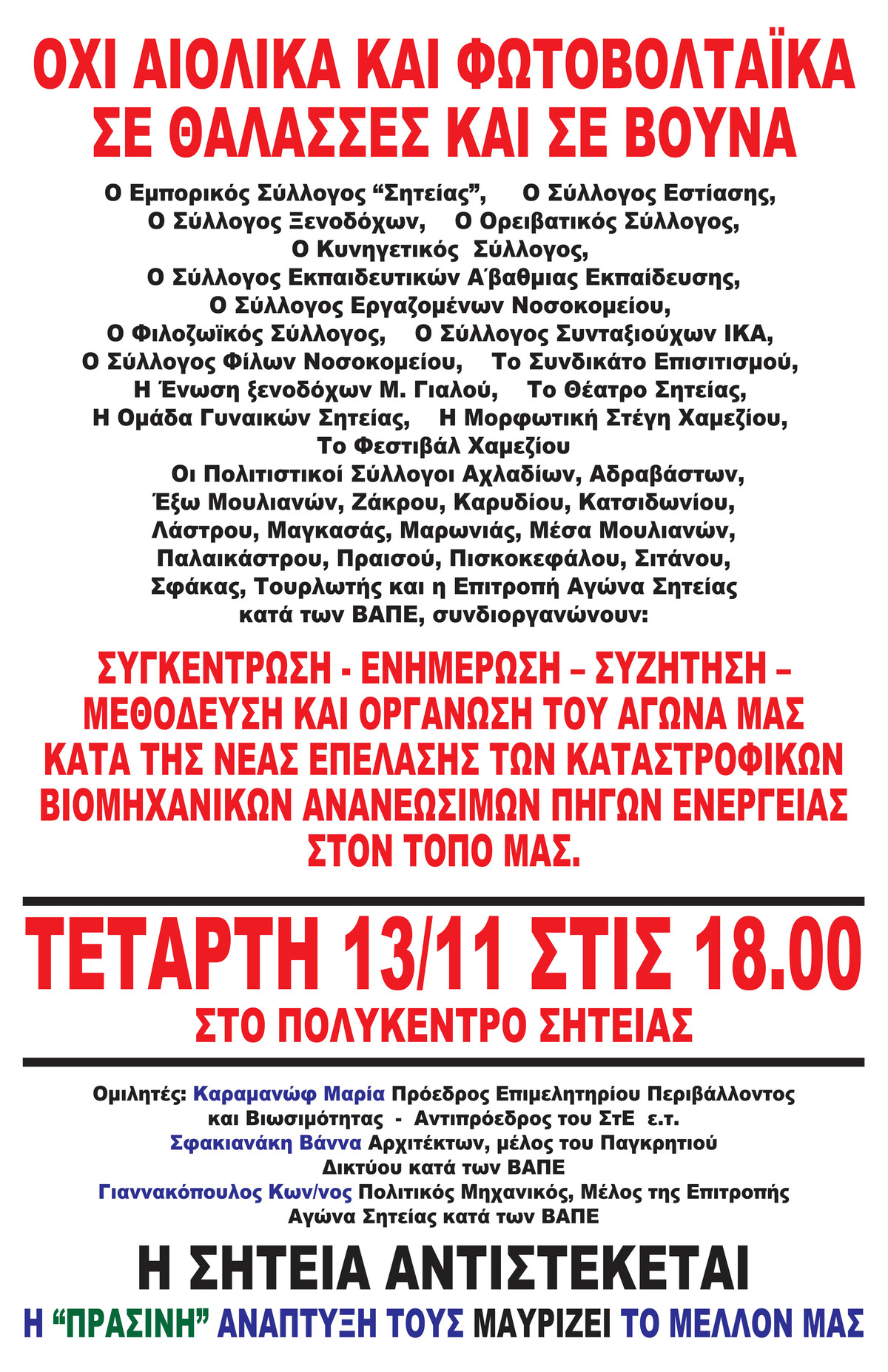 Σύλλογοι, Φορείς και η Επιτροπή Αγώνα Σητείας κατά των ΒΑΠΕ