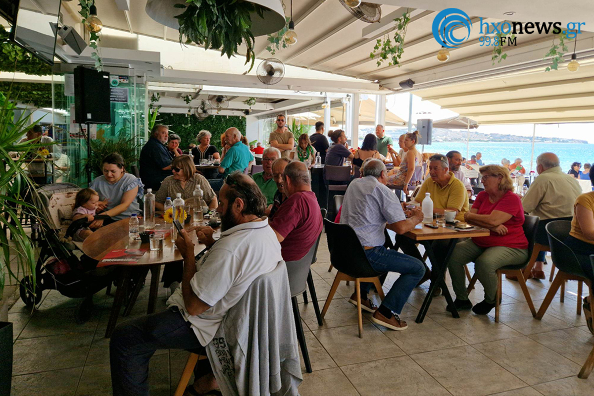 Στη συνέχεια έκανε βόλτα στο κέντρο της πόλης. Για να συναντήσει αργότερα μέλη και φίλους στο cafe Απέριττον στην παραλία της πόλης.