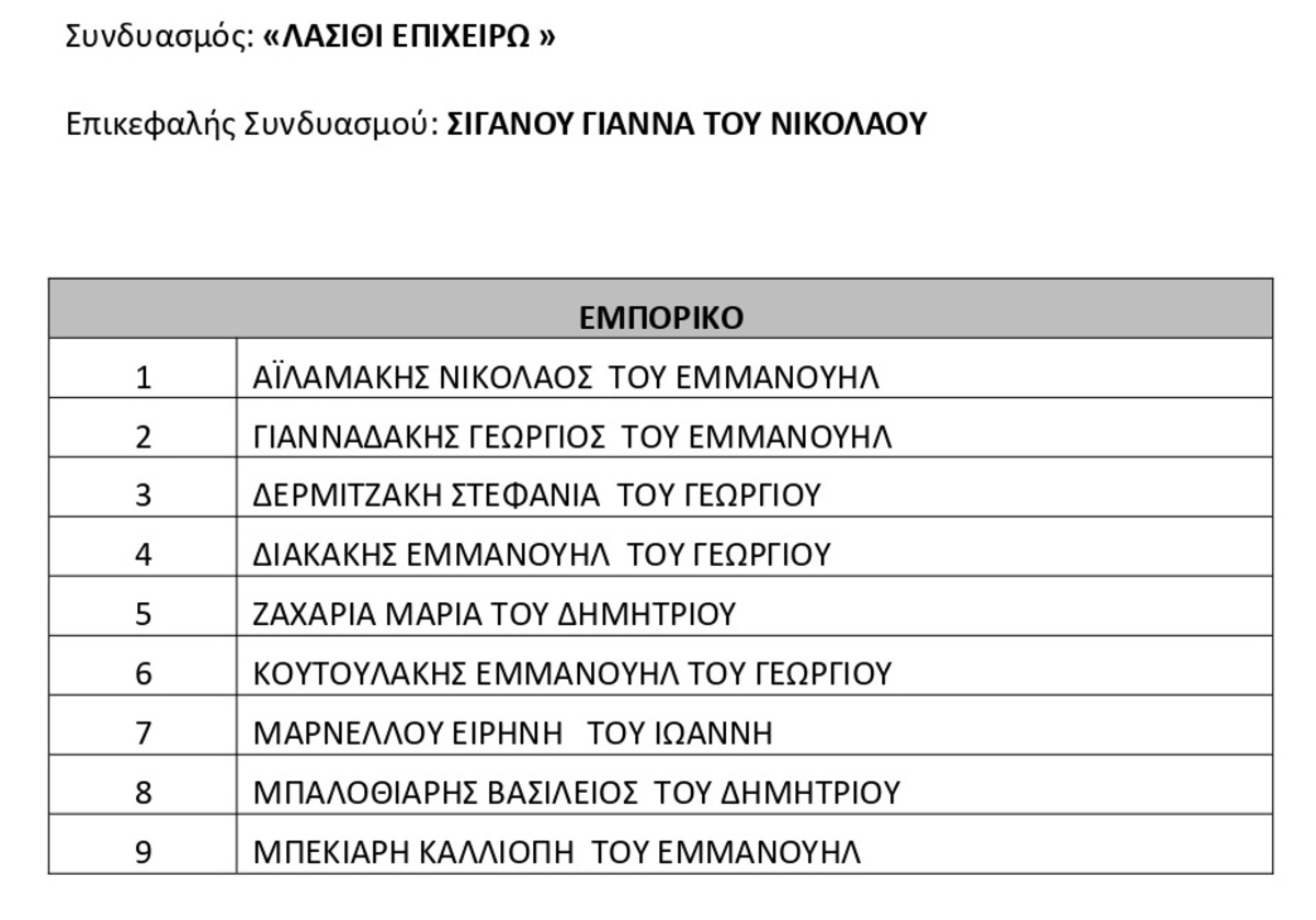 Επικεφαλής της Επιμελητηριακής Παράταξης «Λασίθι Επιχειρώ»
