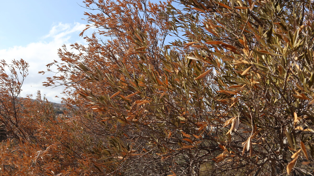 Φωτογραφίες υδατικά καταπονημένων ελαιοδένδρων και άγριας βλάστησης