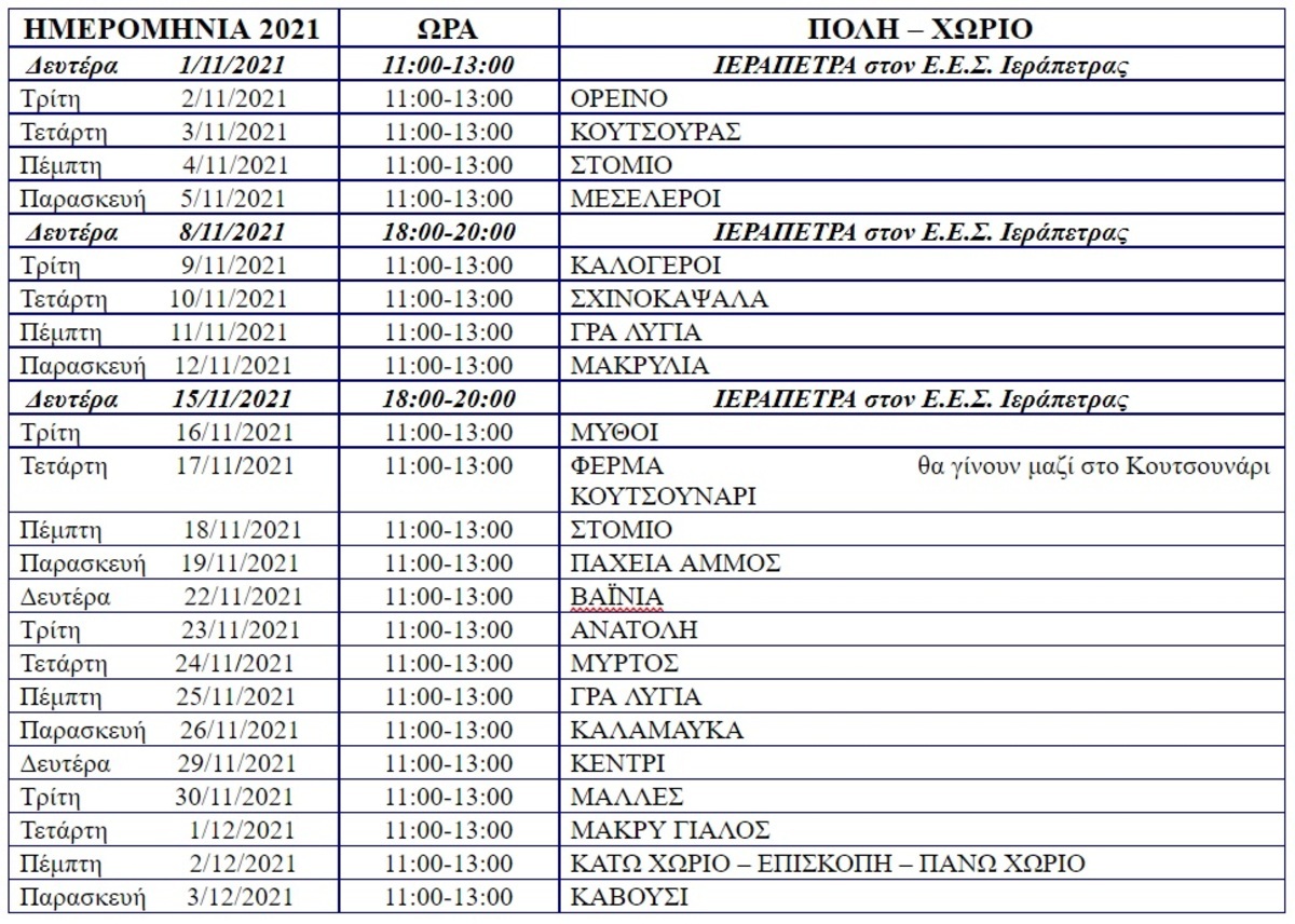 Αναλυτικά το πρόγραμμα των επισκέψεων – Κλείστε το ραντεβού σας στο 28420 25466