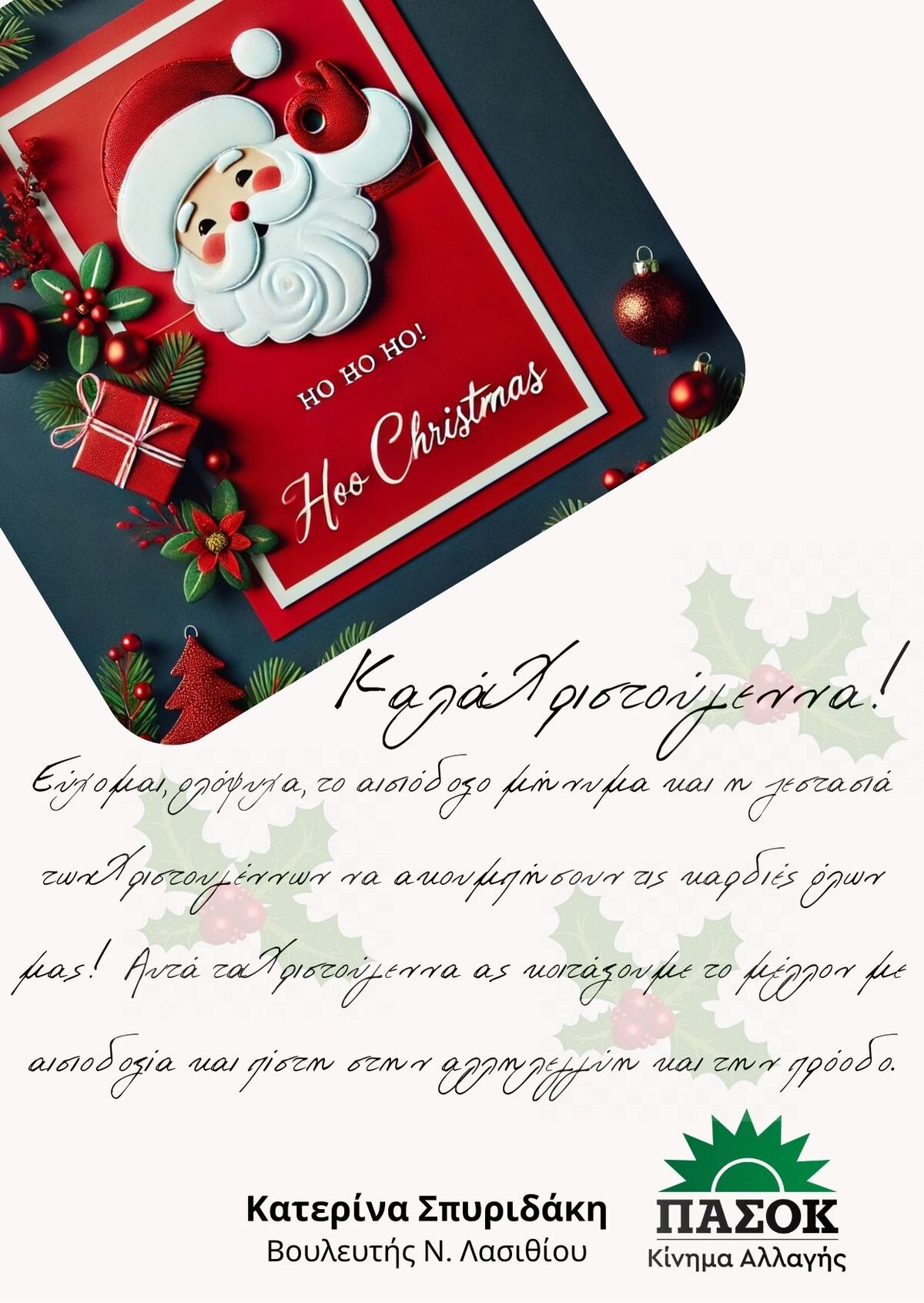 "Το 2025 να είναι μια χρονιά όπου τα όνειρά μας θα βρίσκουν δρόμους υλοποίησης και οι προσπάθειές μας θα έχουν αποτέλεσμα. Ας είναι γεμάτη υγεία, αισιοδοξία και δημιουργία!"