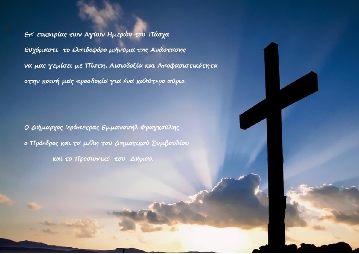 Ο Δήμαρχος, το ΔΣ και το προσωπικό εύχονται πίστη, αισιοδοξία και αποφασιστικότητα