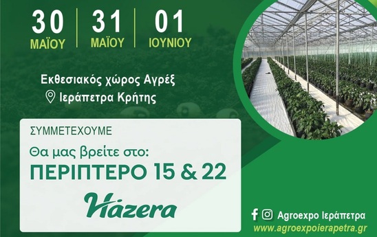 Η Hazera θα βρίσκεται στα περίπτερα 15 και 22 καθ’ όλη τη διάρκεια της έκθεσης. Ο κ. Καρανικολός κάλεσε τον αγροτικό κόσμο να έρθει, να ενημερωθεί και να θέσει ερωτήσεις για τα χαρακτηριστικά των νέων ποικιλιών και τις ανθεκτικότητές τους.