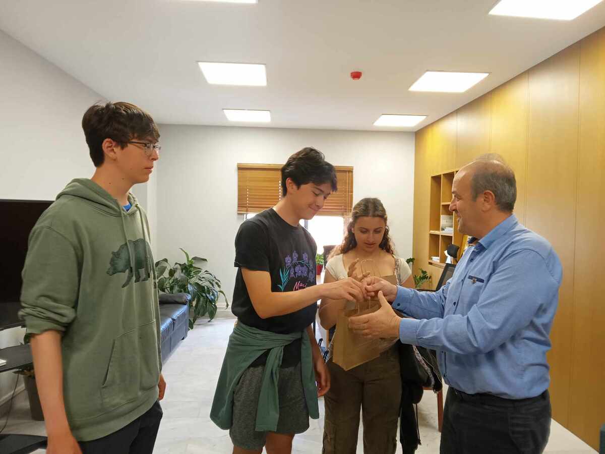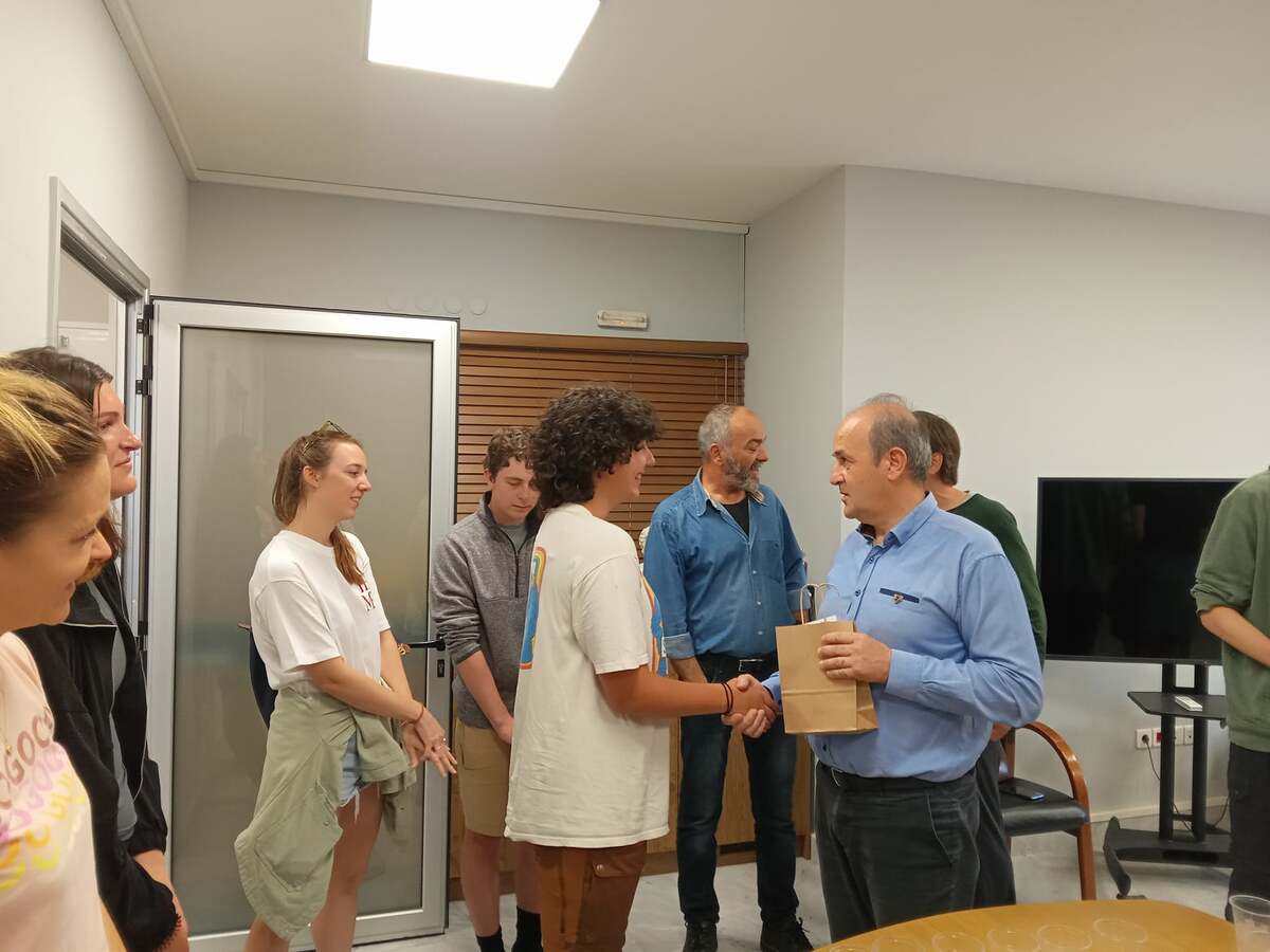 Ο Δήμαρχος αφού καλωσόρισε τους φοιτητές και τον συνοδό τους Ζήνωνα Αγγελόπουλο, τους μίλησε για την οικονομία της περιοχής που στηρίζεται κατά κύριο λόγο στην παραγωγή αγροτικών προϊόντων και τον τουρισμό, αναφέρθηκε στις ομορφιές του τόπου μας και ευχήθηκε στα παιδιά να απολαύσουν τη διαμονή τους. Εν συνεχεία τους προσέφερε αναμνηστικά δώρα που θα τους θυμίζουν το πέρασμά τους από την Ιεράπετρα.