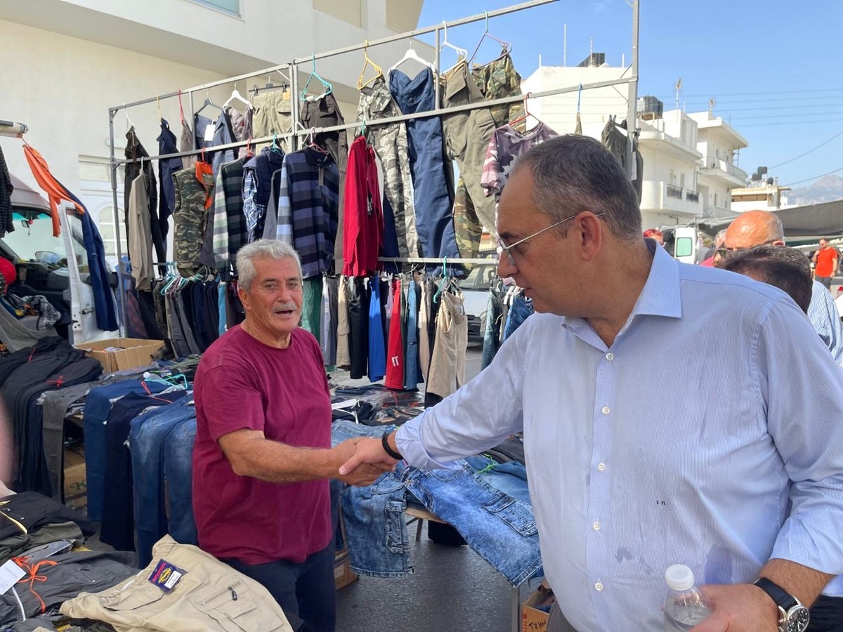 Στην Λαϊκή Αγορά της Ιεράπετρας βρέθηκε ο Α’ Αντιπρόεδρος της Βουλής και βουλευτής Λασιθίου Γιάννης Πλακιωτάκης το Σάββατο 12 Οκτωβρίου συνοδευόμενος από την Πρόεδρο των Παραγωγών Λαϊκών Αγορών Εριέτα Μπαγορδάκη και την Πρόεδρο των Εμπόρων Φωτεινή Κουτρούλη. Η επίσκεψη πραγματοποιήθηκε λίγες ημέρες μετά την ψήφιση στην Βουλή της ρύθμισης που διαγράφει πρόστιμα και καταργεί την απαίτηση καταβολής τους τα οποία είχαν επιβληθεί το 2023 σε παραγωγούς και επαγγελματίες εμπόρους της Λαϊκής Αγοράς Αγίου Νικολάου Λασιθίου.