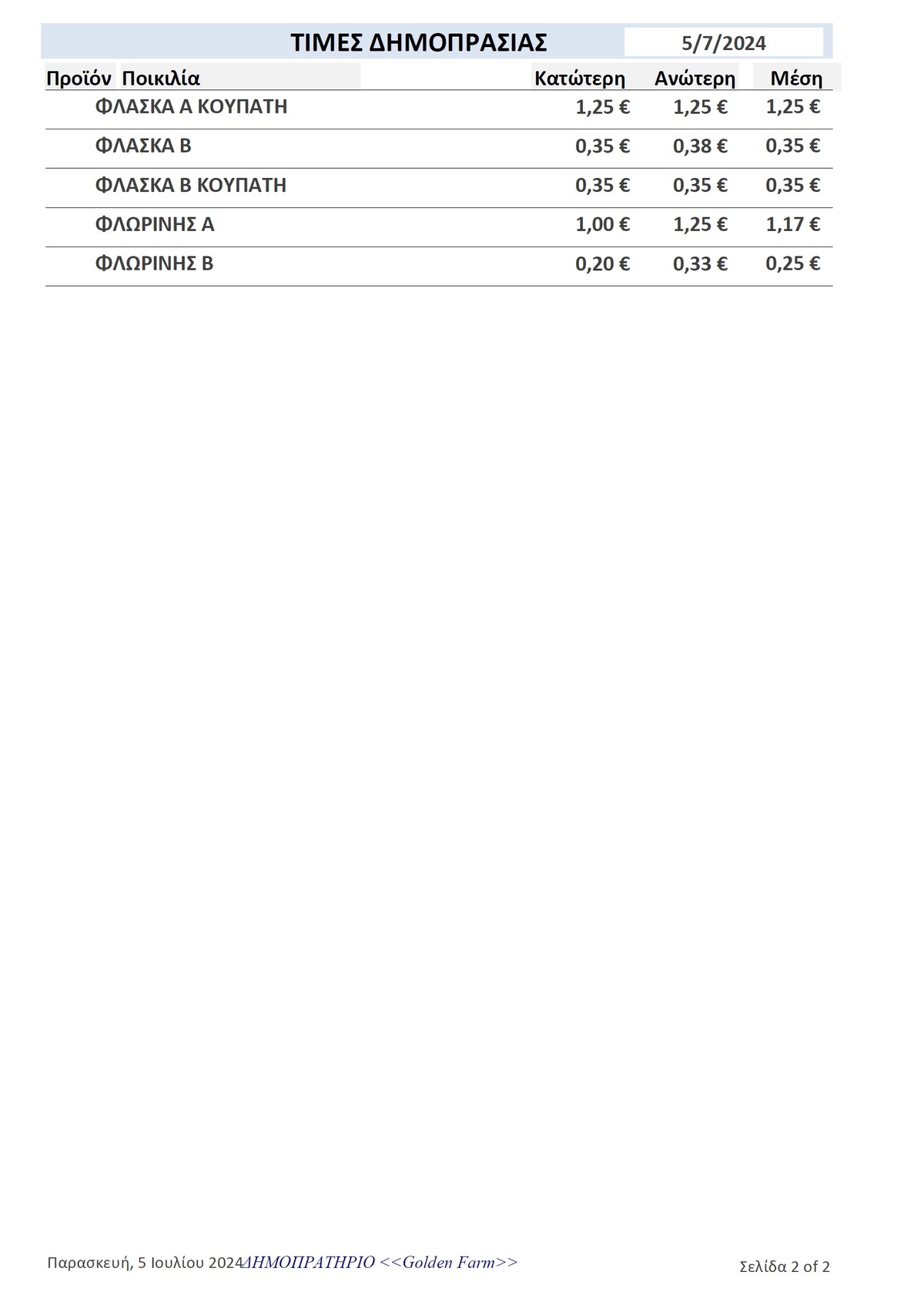 GOLDEN FARM | Τιμές Αγροτικών Προϊόντων 05.07.2024 ΤΙΜΕΣ 4:06 μ.μ. - Παρασκευή 5 Ιουλίου 2024 04:07 μ.μ. - Παρ, 05/06/2024 ΙΕΡΑΠΕΤΡΑ, ΤΙΜΕΣ ΑΓΡΟΤΙΚΩΝ ΠΡΟΙΟΝΤΩΝ , ΔΗΜΟΠΡΑΤΗΡΙΟ, ΚΗΠΕΥΤΙΚΑ , GOLDEN FARM Δείτε τις σημερινές τιμές του δημοπρατηρίου