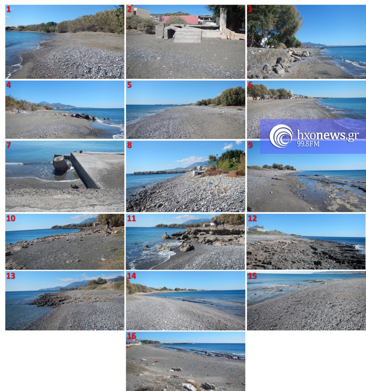 Το φωτογραφικό υλικό που έχει συγκεντρωθεί στο πλαίσιο του ερευνητικού έργου αναδυκνύει οτι υπάρχουν σημεία όπου είναι εμφανής η διάβρωση της ακτογραμμής προκαλώντας αρκετά προβλήματα σε ιδιοκτήτες, περιουσίες και όχι μόνο.