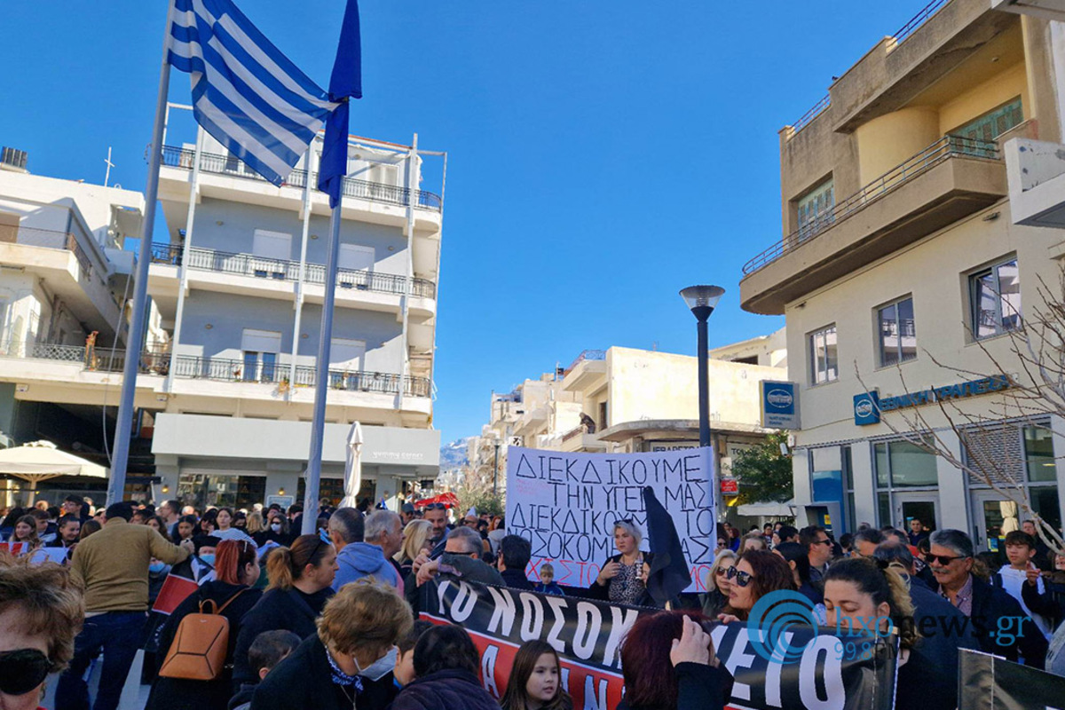 Πολίτες κάθε ηλικίας από κάθε μεριά της Ιεράπετρα αλλά και από τον Γούδουρα μέχρι και την Βιάννο έδωσαν δυναμικό παρών στην κινητοποίηση. Εκκλησία, Δημοτική αρχή, δημοτικές παρατάξεις, εκπρόσωποι της Περιφέρειας, εργαζόμενοι στο Νοσοκομείο, μαθητική κοινότητα, εκπρόσωποι συλλόγων και φορέων ήταν εκεί.