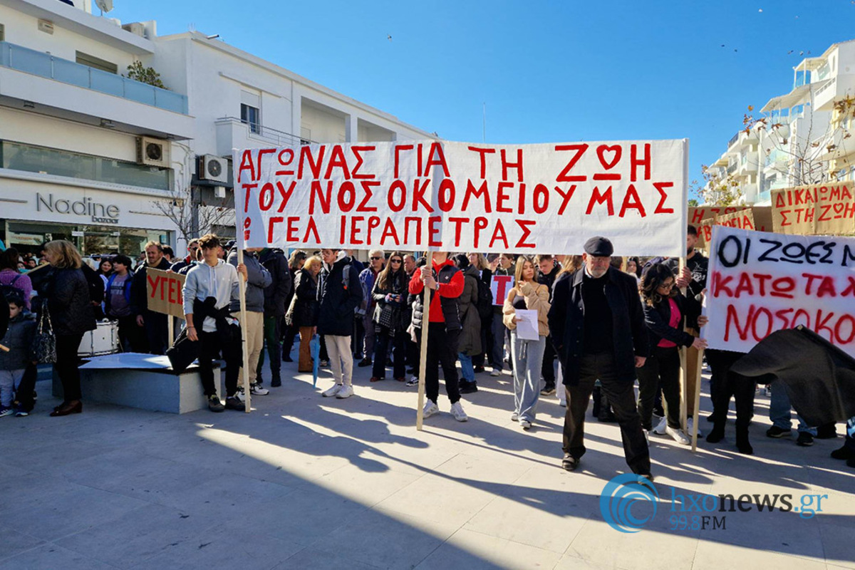 Σύσσωμη η κοινωνία της Ιεράπετρας βγήκε στους δρόμους , διεκδικώντας λύσεις εδώ και τώρα για το Νοσοκομείο Ιεράπετρας που συνεχώς υποβαθμίζεται από την έλλειψη ιατρικού και λοιπού προσωπικού. Οι Γεραπετρίτες έδωσαν ραντεβού σήμερα το πρωί στο συλλαλητήριο που έγινε στις 11.00 το πρωί στην κεντρική πλατεία της πόλης.
