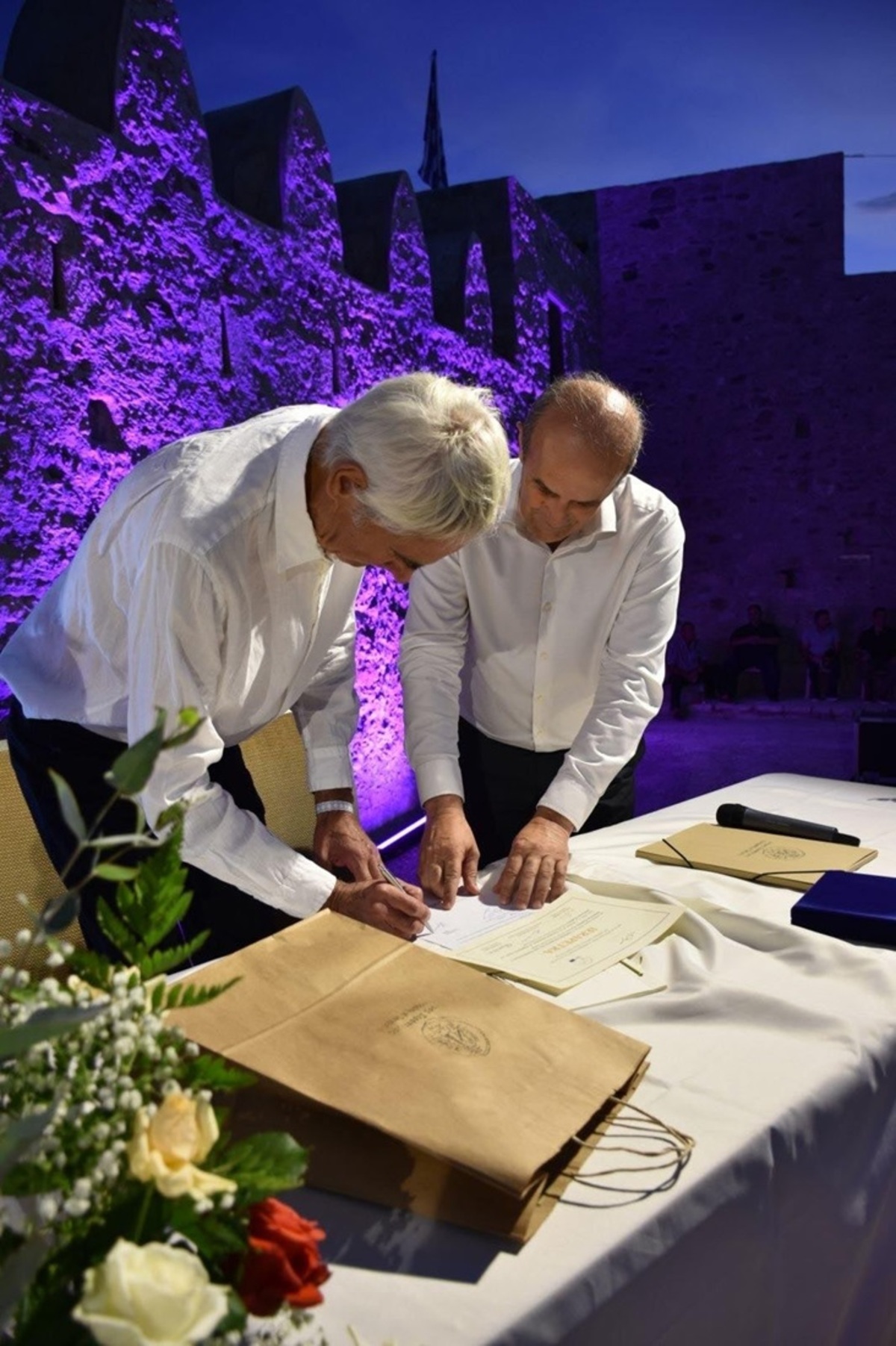 Το πιστοποιητικό υπογράφηκε κατά τη διάρκεια μιας λαμπρής τελετής στον εξωτερικό χώρο του Φρουρίου Καλέ, παρουσία των τοπικών αρχών, φορέων, υπηρεσιακών παραγόντων, πλήθους κόσμου και επισκεπτών. Χαιρέτησαν ο Δήμαρχος Ιεράπετρας, ο αντιπεριφερειάρχης Λασιθίου Γιάννης Ανδρουλάκης, η προϊσταμένη της Εφορείας Αρχαιοτήτων Λασιθίου Χρύσα Σοφιανού, ο καθηγητής γλωσσολογίας και μέλος της Ακαδημίας Αθηνών Χριστόφορος Χαραλαμπάκης καθώς και η Πατρίτσια Μασουράκη από το Υπουργείο Πολιτισμού. Εν συνεχεία ο κ. Βοναπάρτης αφού ευχαρίστησε το Δήμαρχο και τους συνεργάτες του για τη θερμή φιλοξενία αναφέρθηκε στο ιστορικό ίδρυσης και το ρόλο της Ομοσπονδίας που έχει ως κύριο στόχο την ένωση ευρωπαϊκών πόλεων των οποίων η ιστορία έχει σημαδευτεί από την επιρροή του Ναπολέοντα. Τη διερμηνεία από τα γαλλικά επιμελήθηκε η Δώρα Φραγκούλη. Εν συνεχεία ο Δήμαρχος προσέφερε στον κ. Βοναπάρτη αναμνηστική τιμητική πλακέτα, γκραβούρες της Ιεράπετρας και μια εικονογραφημένη αναπαράσταση της άφιξης του Μεγάλου Ναπολέοντα στην Ιεράπετρα. Συντονίστρια της τελετής ήταν η αντιδήμαρχος Φωτεινή Περακάκη.