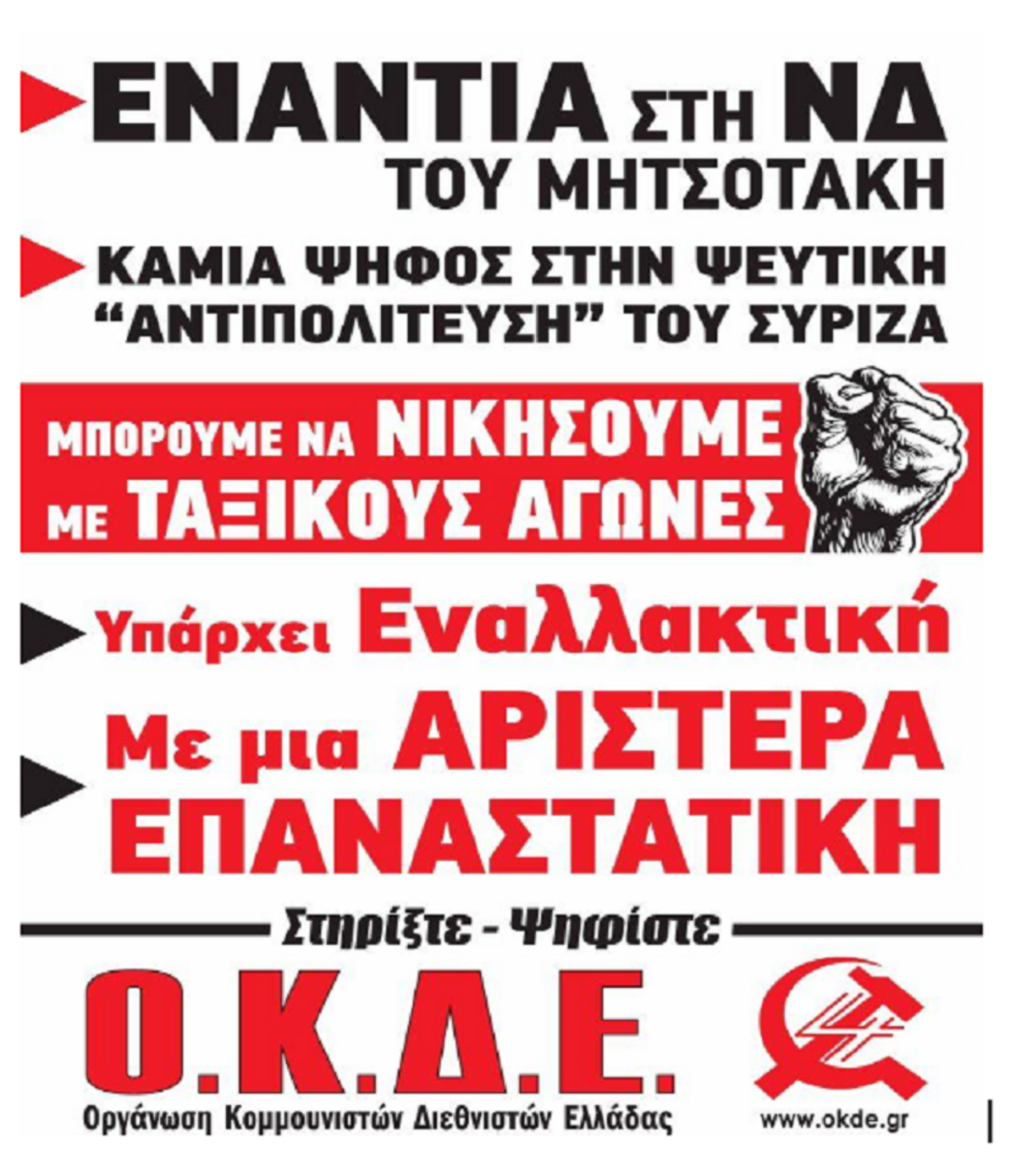 Η ΟΚΔΕ (Οργάνωση Κομμουνιστών Διεθνιστών Ελλάδας) συνεχίζει τον αγώνα και στις δεύτερες εκλογές της 25ης Ιουνίου, όπου συμμετέχει αυτόνομα, με ψηφοδέλτια σε όλη την επικράτεια: