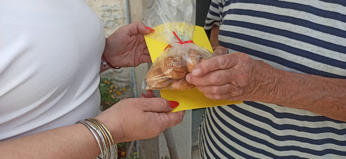 Επισκέπτηκαν ωφελούμενους, δίνοντας ευχές για Καλό Πάσχα κι ένα συμβολικό δώρο: Πασχαλινά γλυκά φτιαγμένα από τις κυρίες του Κ.Α.Π.Η. κι ευχετήριες κάρτες από τα παιδιά του Εικαστικού Κ.Δ.Α.Π.