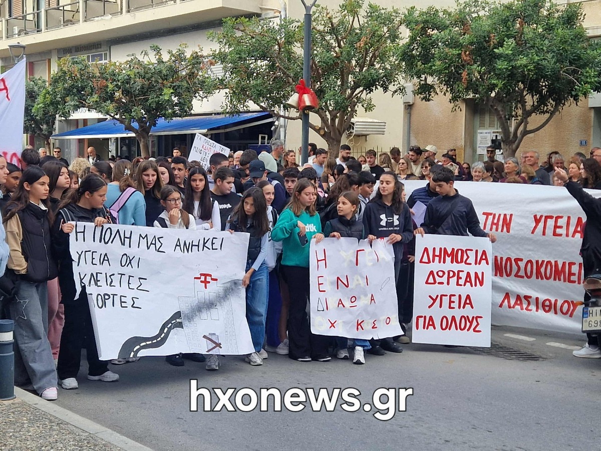 Ιδιαίτερα μαζική ήταν η συμμετοχή της μαθητικής κοινότητας: όλα τα σχολεία της Ιεράπετρας έδωσαν το παρών, με τους μαθητές να δηλώνουν δυναμικά την ανάγκη πρόσβασης σε επαρκείς και ασφαλείς υπηρεσίες υγείας.