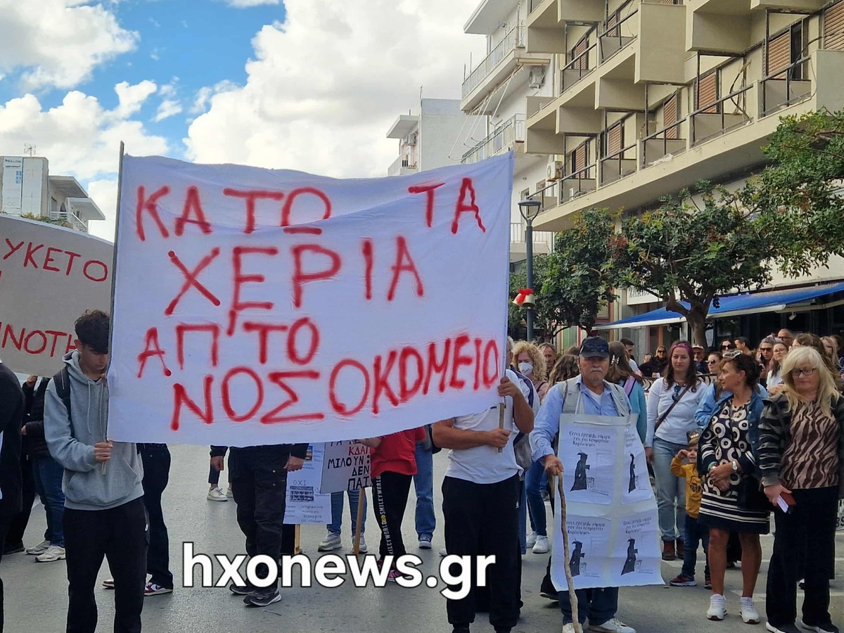 Μετά τη συγκέντρωση, ακολούθησε πορεία στους κεντρικούς δρόμους της Ιεράπετρας, με συνθήματα και πανό που ανέδειξαν το αίτημα για ουσιαστική ενίσχυση των δημόσιων δομών υγείας.