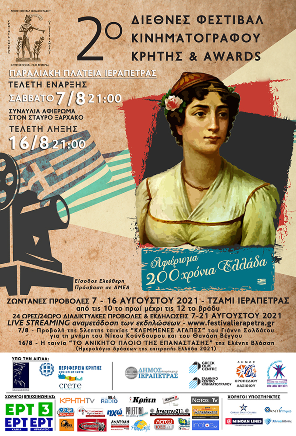 Το «2ο Διεθνές Φεστιβάλ Κινηματογράφου Κρήτης & Awards», θα είναι αφιερωμένο στην σύγχρονη Ελληνική ιστορία «Στα 200 χρόνια Ελλάδα» και στο πλαίσιο αυτό στην Τελετή έναρξης θα προβληθεί η ταινία «Το ανίκητο πλοίο της Επανάστασης». Μια ταινία που αναδεικνύει μια πραγματική ιστορία, με φόντο την Ελληνική Επανάσταση του 1821 και την Σύγχρονη Ελλάδα.