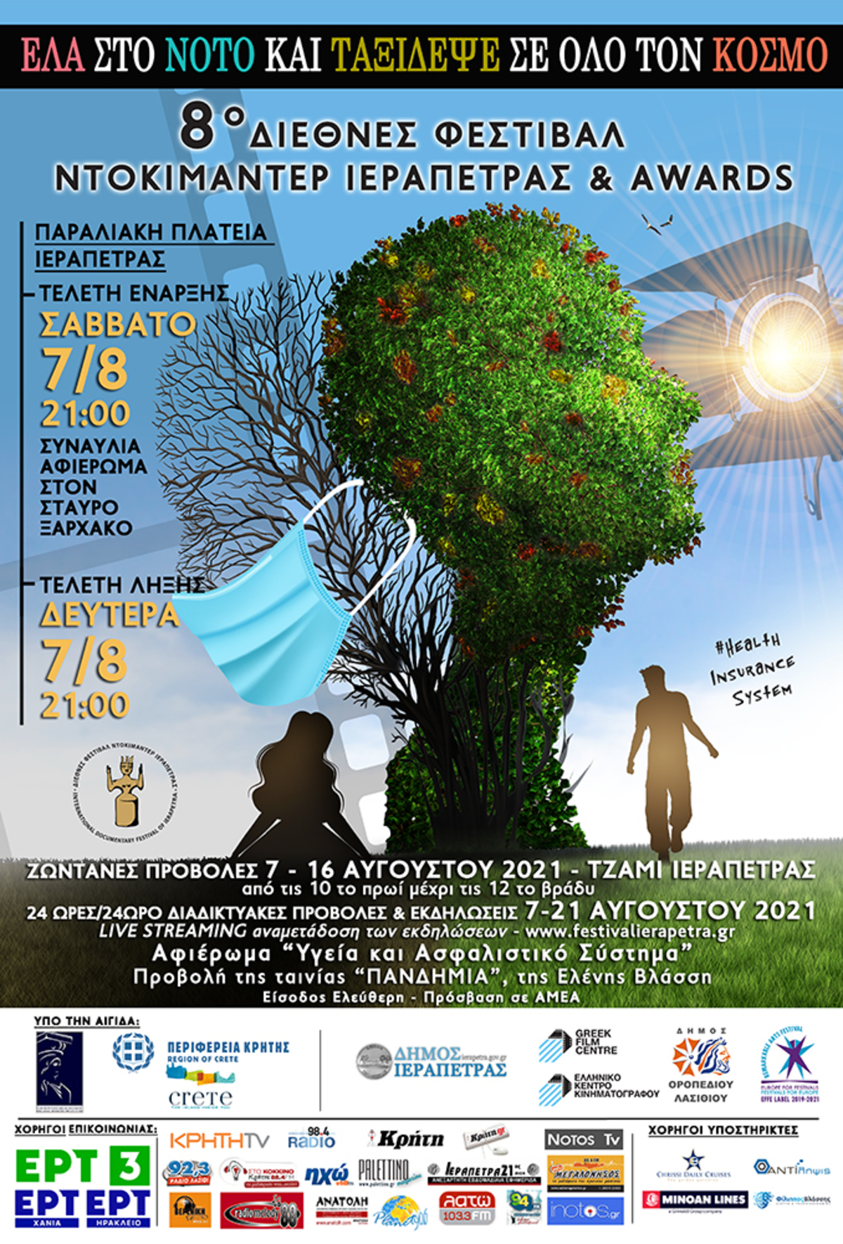 Το «8ο Διεθνές Φεστιβάλ Ντοκιμαντέρ Ιεράπετρας & Awards» είναι αφιερωμένο στην Υγεία και το Ασφαλιστικό Σύστημα και μάλιστα στην Τελετή Έναρξης θα προβληθεί το νέο ντοκιμαντέρ της σκηνοθέτιδας Ελένης Βλάσση « Η Πανδημία».