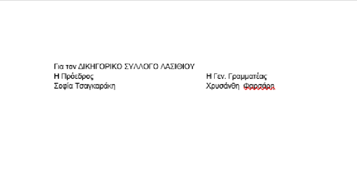 ΔΙΚΗΓΟΡΙΚΟΣ ΣΥΛΛΟΓΟΣ ΛΑΣΙΘΙΟΥ