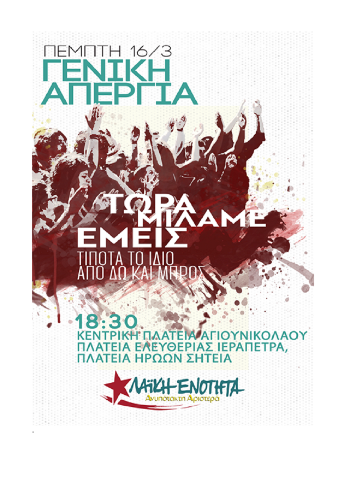 ΣΥΡΙΖΑ ΛΑΣΙΘΙΟΥ: Όλες και Όλοι στη Γενική Απεργία ΓΣΕΕ - ΑΔΕΔΥ