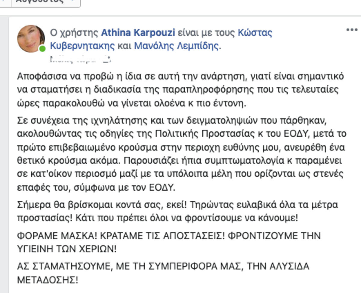 Τα παραπάνω επιβεβαίωσε και η ιατρός της περιοχής κ. Αθηνά Καρπούζη με ανάρτηση της.