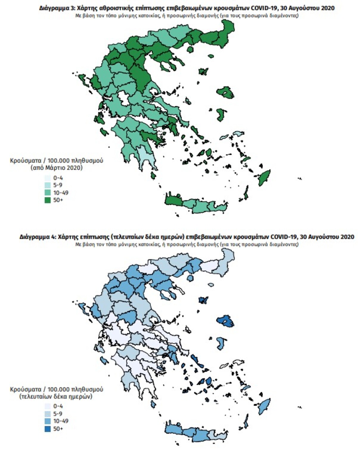 Ο χάρτης αποτυπώνει τη γεωγραφική κατανομή των συνολικών κρουσμάτων COVID-19 (από την αρχή της επιδημίας) ανά Περιφερειακή Ενότητα της χώρας, με βάση την δηλωθείσα διεύθυνση μόνιμης κατοικίας του ασθενούς, ή τη διεύθυνση προσωρινής διαμονής για τους τουρίστες και άλλους προσωρινά διαμένοντες στην Ελλάδα. Συμπεριλαμβάνονται τόσο κρούσματα με ιστορικό ταξιδίου (“εισαγόμενα”) όσο και κρούσματα με πιθανή εγχώρια μετάδοση.