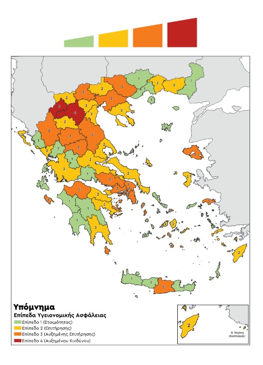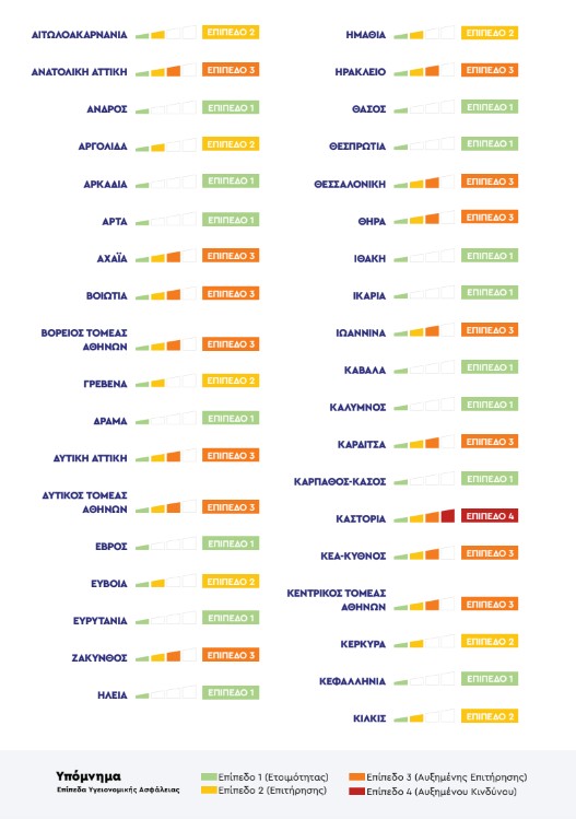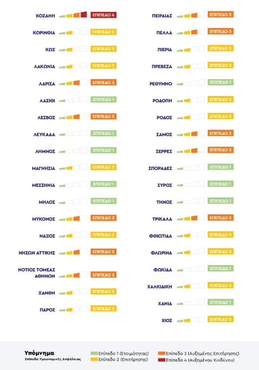 Επιπλέον, η Θεσσαλονίκη, η Βοιωτία, η Λάρισα και οι Σέρρες θα βρεθούν στο επίπεδο 3, δηλαδή το «κίτρινο».
