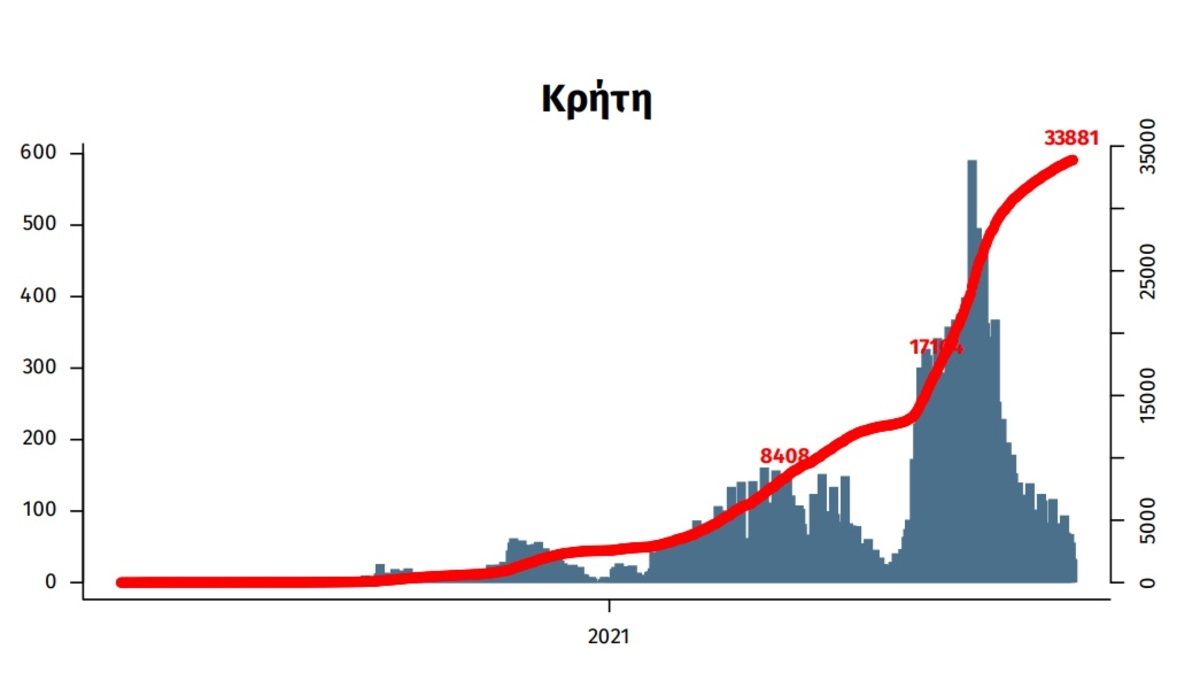 Από την αρχή της πανδημίας μέχρι και χθες, στην Κρήτη είχαν καταγραφεί συνολικά 33.881 κρούσματα.