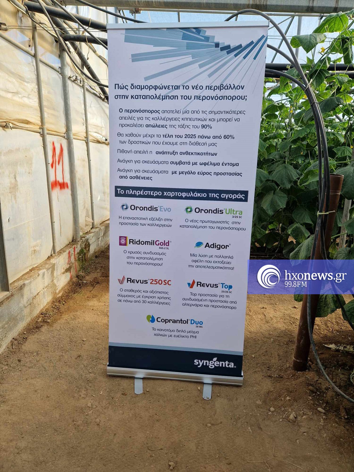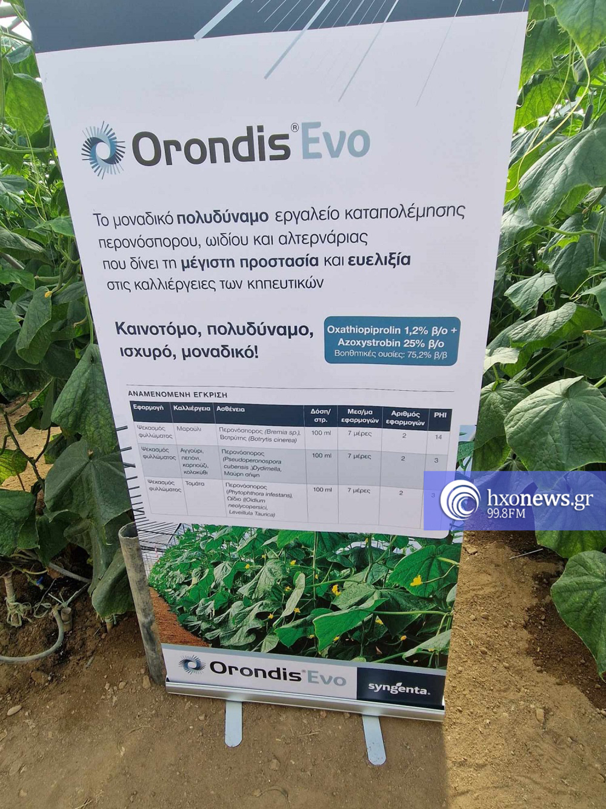 Στις λύσεις που προσφέρει η εταιρεία, ο κ. Δελημπαλταδάκης σημείωσε ότι την τελευταία τετραετία έχουν αποσυρθεί περίπου 113 προϊόντα φυτοπροστασίας γι’ αυτό οι παραγωγοί και οι γεωπόνοι αναζητούν φιλικές και συμβατές λύσεις. Στο αγγούρι, βασική καλλιέργεια για την Ιεράπετρα, παρουσιάστηκε το Robys Evo, ένα καινοτόμο μίγμα που συνδυάζει νέα δραστική ουσία με το azoxystrobin, επιτυγχάνοντας συμπληρωματική και ταυτόχρονη δράση κατά του περονόσπορου και του ωιδίου. Μετά από ενδελεχή πειραματισμό και παρουσίαση στην Ιεράπετρα , οι παραγωγοί το δοκίμασαν και, όπως είπε, πρώτη φορά μετά από 25 χρόνια έλαβαν τόσο ομόφωνο θετικό μήνυμα, καθώς με έναν ψεκασμό αντιμετωπίζονται πολλές ασθένειες.