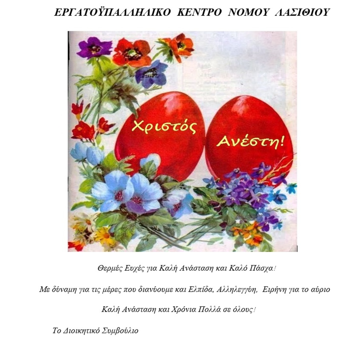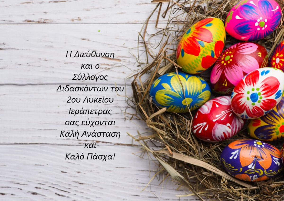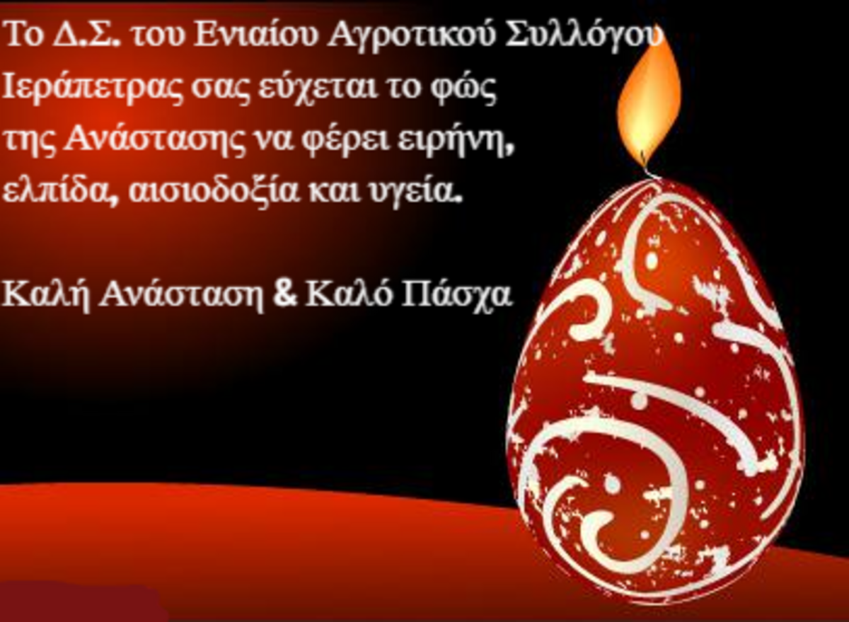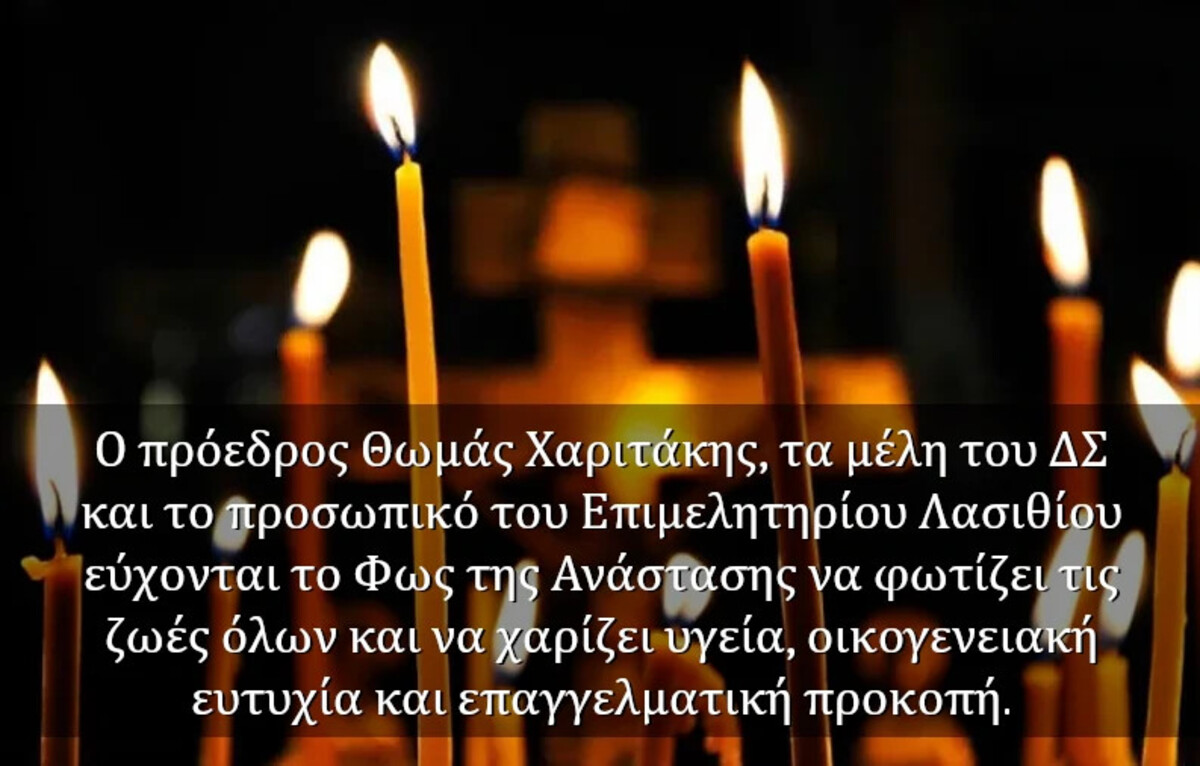 Μας έστειλαν ευχές για Καλή Ανάσταση ΛΑΣΙΘΙ ΙΕΡΑΠΕΤΡΑ 9:32 π.μ. - Πέμπτη 21 Απριλίου 2022 09:04 π.μ. - Πέμ, 21/32/2022 ΚΑΛΟ ΠΑΣΧΑ Χρόνια πολλά, καλό Πάσχα σε όλους! ΜΙΝΟΣ ΕΜΙ