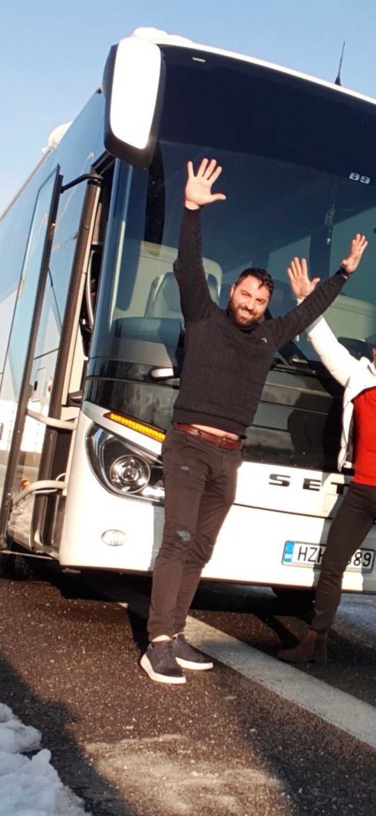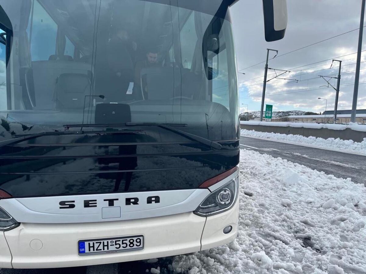 Άνοιξε τις πόρτες του λεωφορείου και φιλοξένησε τους παγωμένους οδηγούς, προσφέροντας τους νερό και έναν ζεστό χώρο για να μην ξεπαγιάσουν τις δύσκολες ώρες της αναμονής μέσα στα χιόνια.